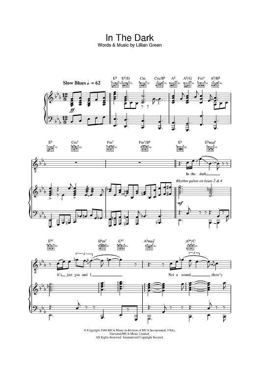 Digital Sheet Music for In The Dark by Norah Jones, Jools Holland scored for Piano/Vocal/Chords; id:379341