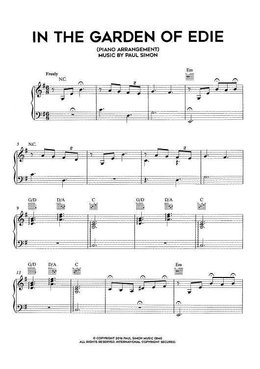 "In the Garden of Edie (piano arrangement)" Sheet Music by Paul Simon