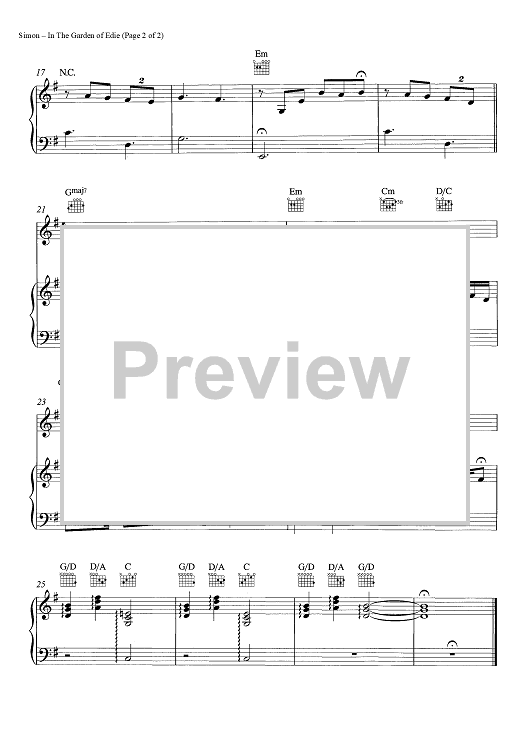 Digital Sheet Music for In the Garden of Edie (piano arrangement) by Paul Simon scored for Piano/Chords; id:465539