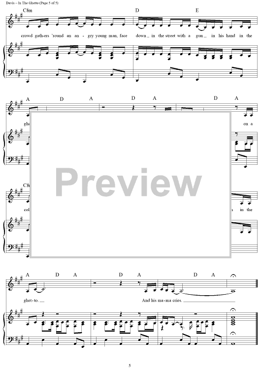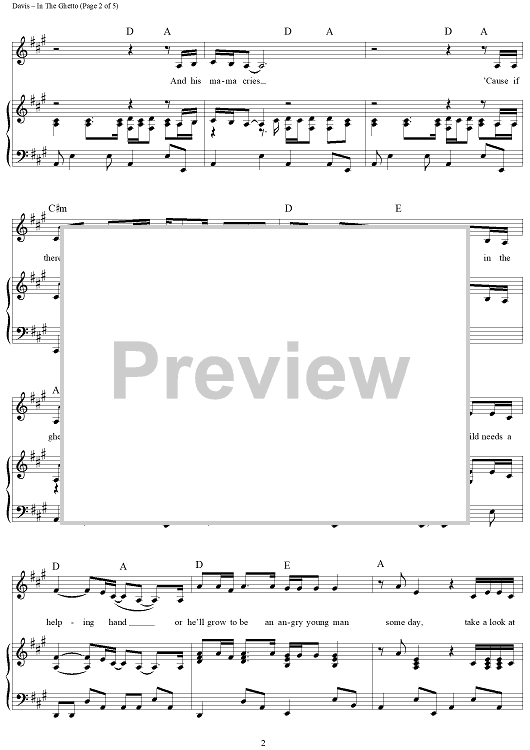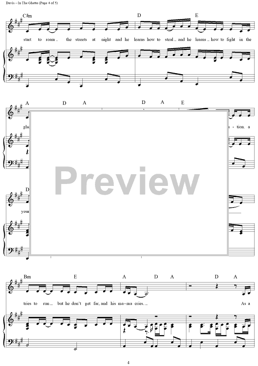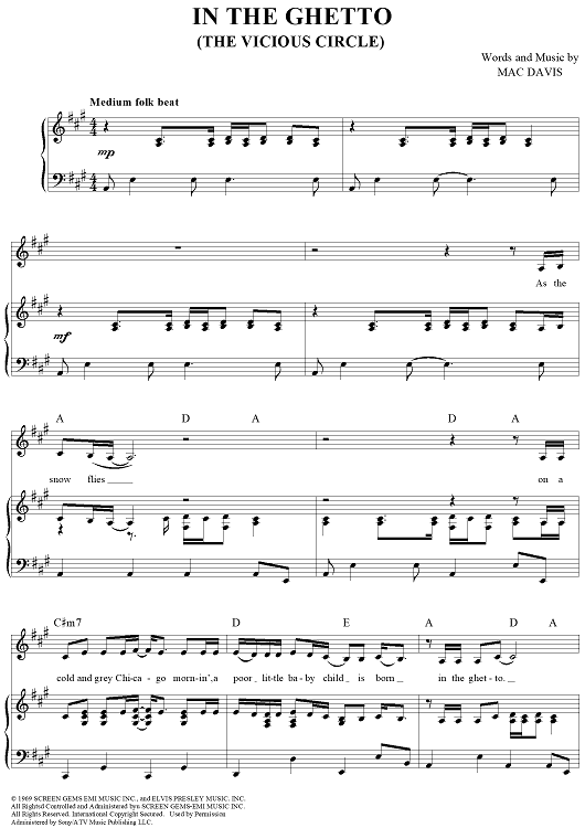 Digital Sheet Music for In the Ghetto (The Vicious Circle) by Elvis Presley, Mac Davis scored for Piano/Vocal/Chords; id:360908