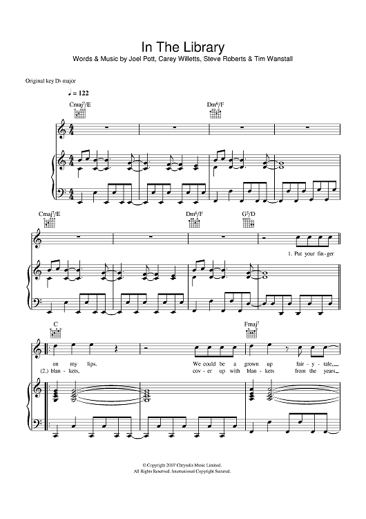 Digital Sheet Music for In The Library by Athlete, Joel Pott, Steve Roberts, Tim Wanstall, Carey Willetts scored for Piano/Vocal/Chords; id:401639