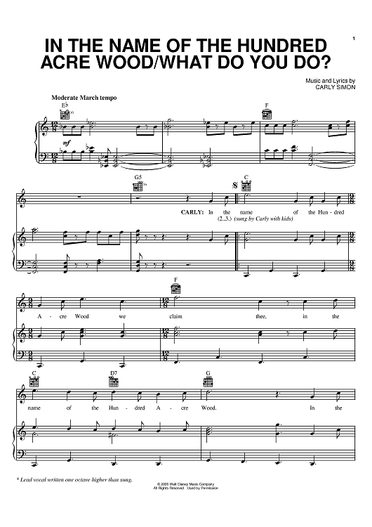 Digital Sheet Music for In The Name Of The Hundred Acre Wood / What Do You Do? by Carly Simon scored for Piano/Vocal/Chords; id:385269