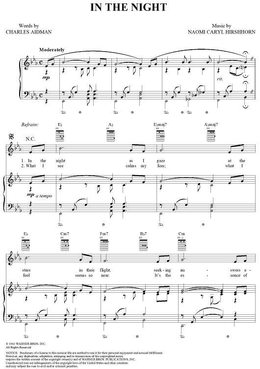 Digital Sheet Music for In the Night by Charles Aidman, Naomi Caryl Hirshhorn scored for Piano/Vocal/Chords; id:355713