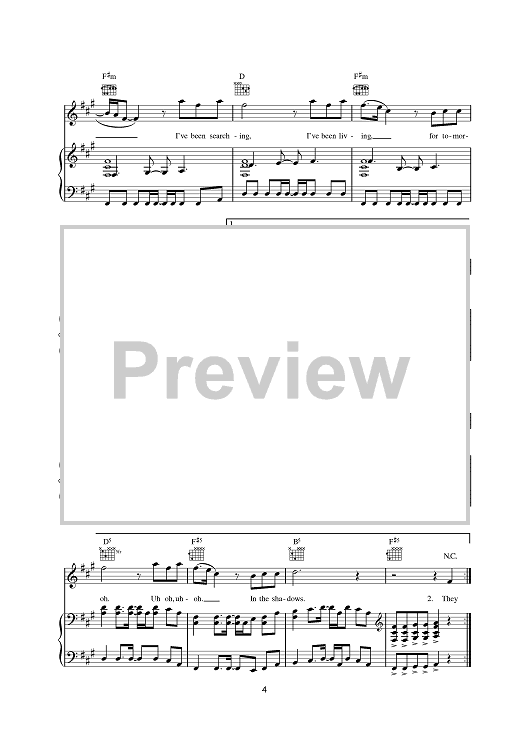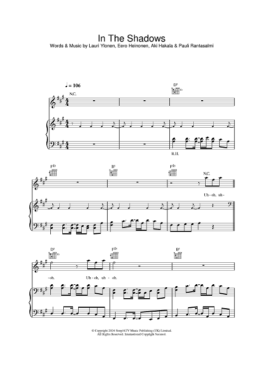 Digital Sheet Music for In The Shadows by Aki Hakala, Eero Heinonen, Pauli Rantasalmi, The Rasmus, Lintu scored for Piano/Vocal/Chords; id:382916
