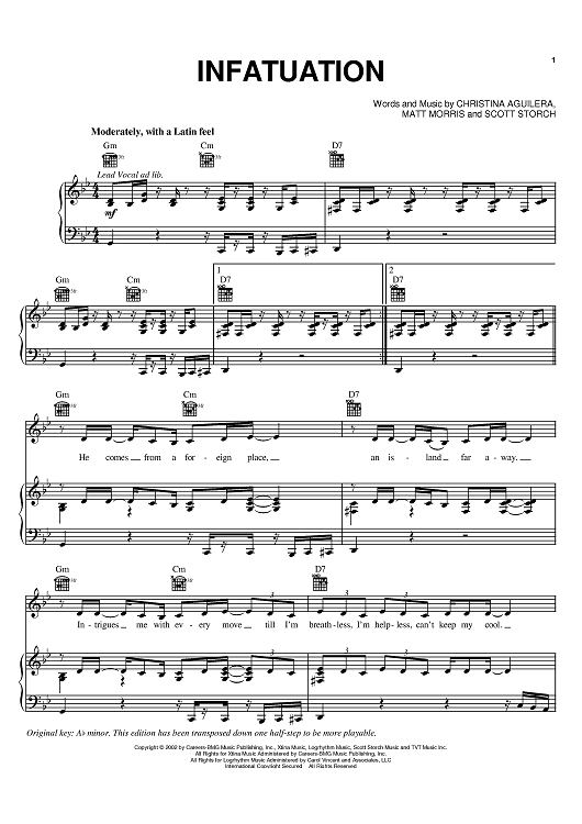 Digital Sheet Music for Infatuation by Scott Storch, Matt Morris, Christina Aguilera scored for Piano/Vocal/Chords; id:371050