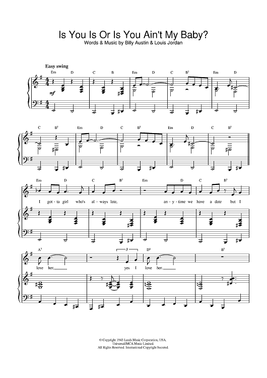 Digital Sheet Music for Is You Is Or Is You Ain't (My Baby)? by Louis Armstrong, Louis Jordan, Billy Austin scored for Piano/Vocal/Chords; id:382696