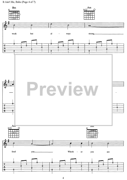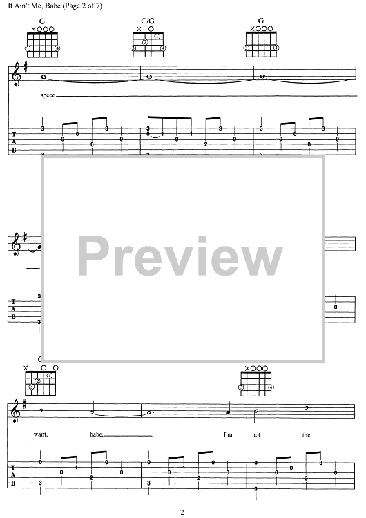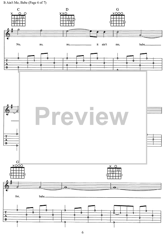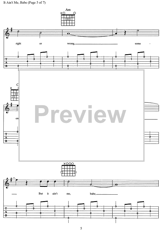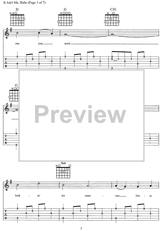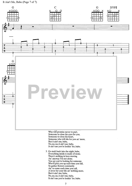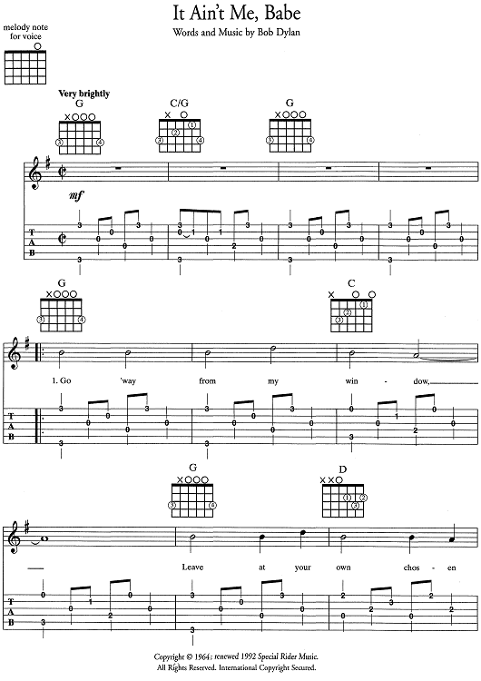 Digital Sheet Music for It Ain't Me, Babe by Bob Dylan scored for Guitar Tab/Vocal/Chords; id:445388