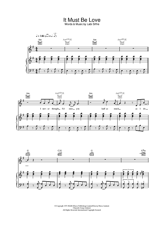 Digital Sheet Music for It Must Be Love by Madness scored for Piano/Vocal/Chords; id:378687