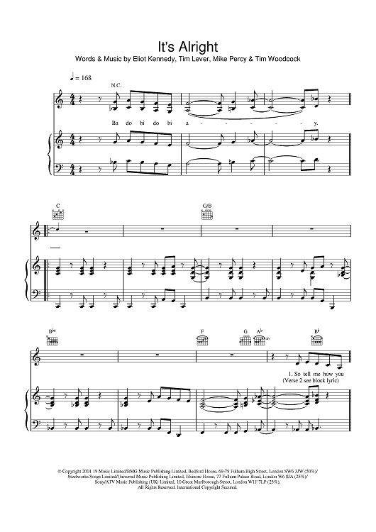 Digital Sheet Music for It's Alright by Mike Percy, Tim Lever, Eliot Kennedy, S Club 7 scored for Piano/Vocal/Chords; id:382628
