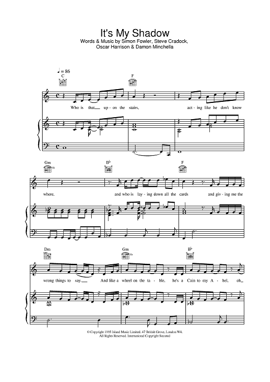 Digital Sheet Music for It's My Shadow by Ocean Colour Scene scored for Piano/Vocal/Chords; id:376203