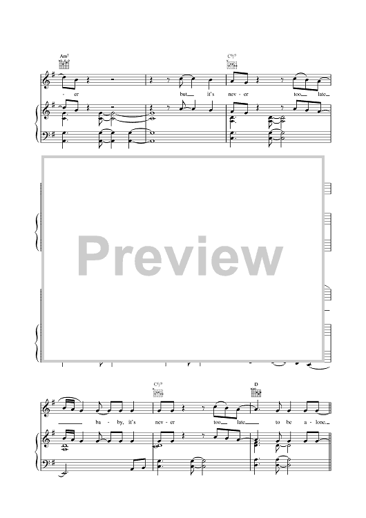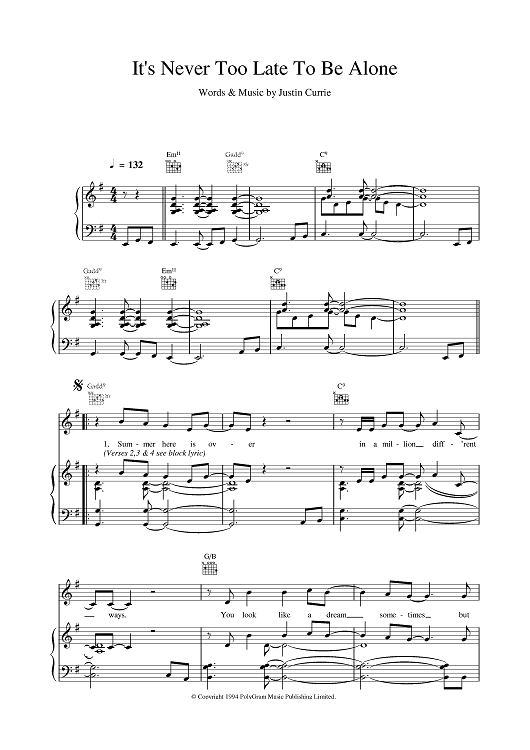 Digital Sheet Music for It's Never Too Late To Be Alone by Del Amitri scored for Piano/Vocal/Chords; id:377312