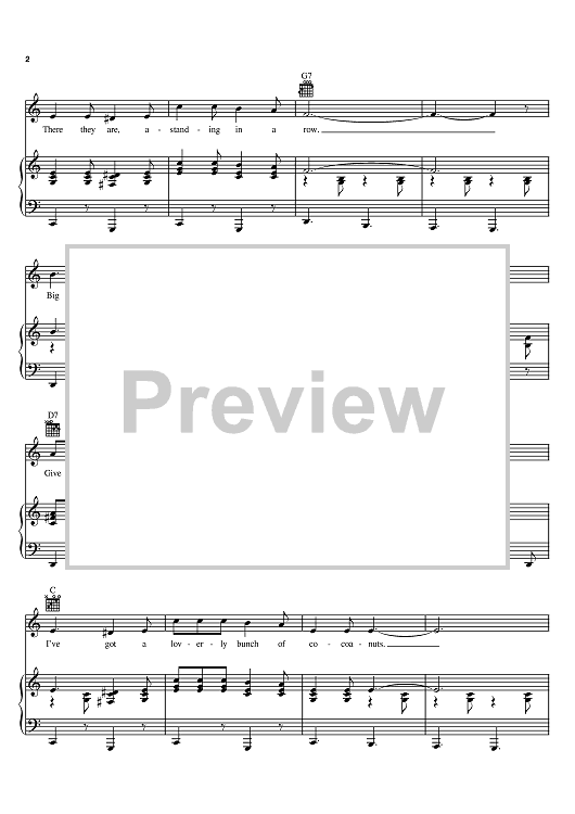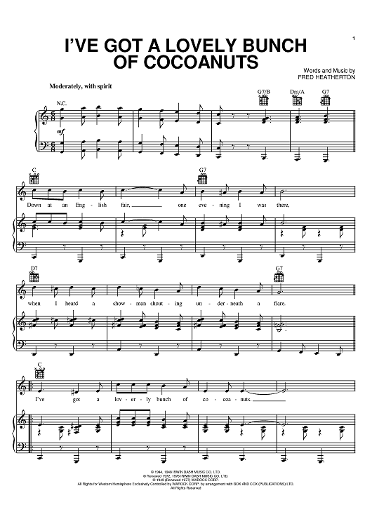 Digital Sheet Music for I've Got A Lovely Bunch Of Cocoanuts by Fred Heatherton, Danny Kaye scored for Piano/Vocal/Chords; id:381879