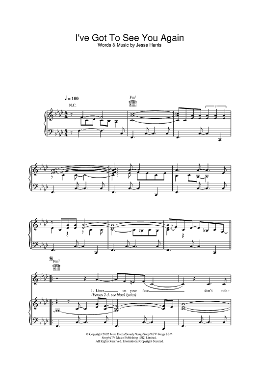 Digital Sheet Music for I've Got To See You Again by Jesse Harris, Norah Jones scored for Piano/Vocal/Chords; id:382639