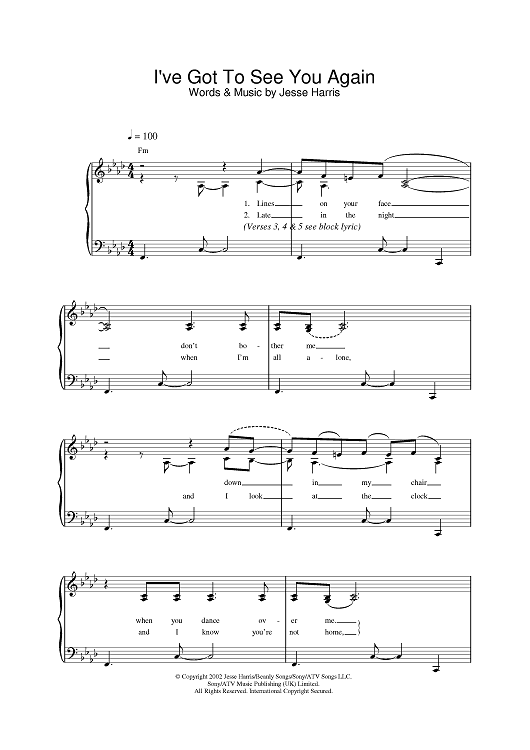 Digital Sheet Music for I've Got To See You Again by Jesse Harris, Norah Jones scored for Piano/Vocal/Chords; id:389998