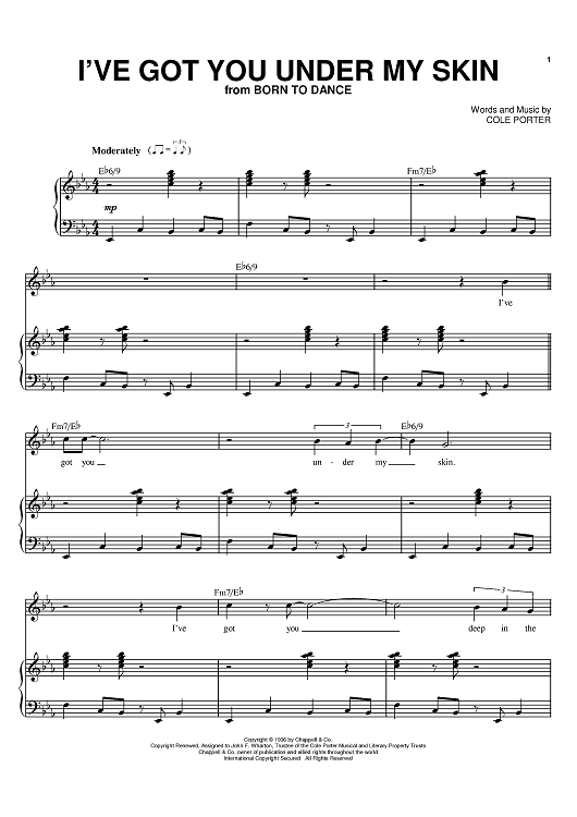 Digital Sheet Music for I've Got You Under My Skin by Frank Sinatra, Ella Fitzgerald, Diana Krall, Dinah Washington, Cole Porter, Michael Buble scored for Piano/Vocal/Chords; id:384144