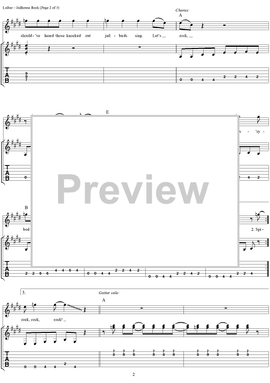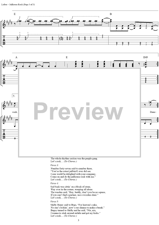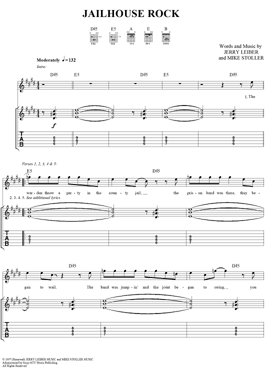 Digital Sheet Music for Jailhouse Rock by Elvis Presley, Jerry Leiber, Mike Stoller, Kenn Chipkin scored for Guitar Tab/Vocal/Chords; id:113560