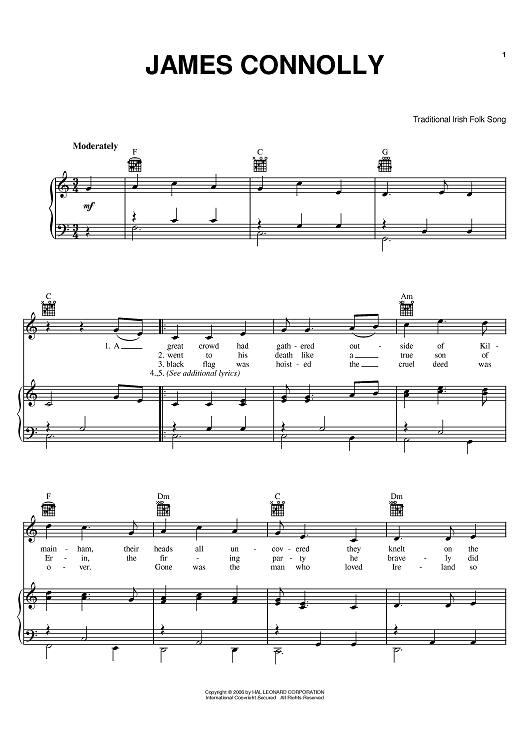 Digital Sheet Music for James Connolly by scored for Piano/Vocal/Chords; id:393997