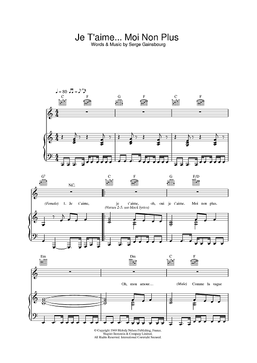 Digital Sheet Music for Je t'aime... moi non plus by Jane Birkin, Serge Gainsbourg scored for Piano/Vocal/Chords; id:386945