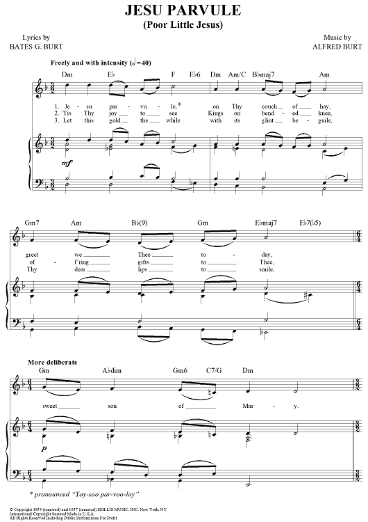Digital Sheet Music for Jesu Parvule (Poor Little Jesus) by Alfred Burt, Bates G. Burt scored for Piano/Vocal/Chords; id:430330