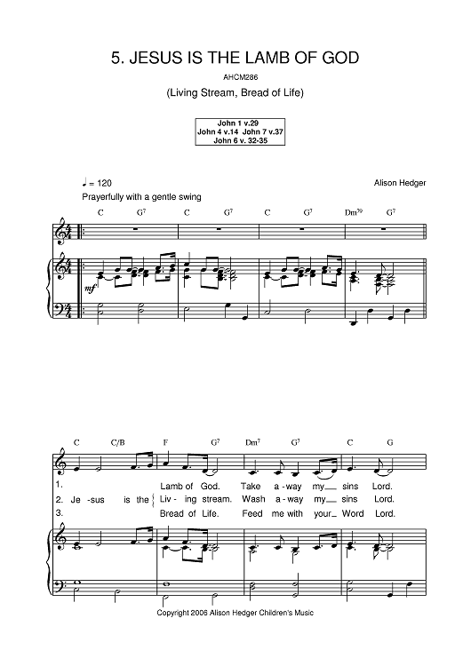 Digital Sheet Music for Jesus Is The Lamb Of God by Alison Hedger scored for Piano/Vocal/Chords; id:391566