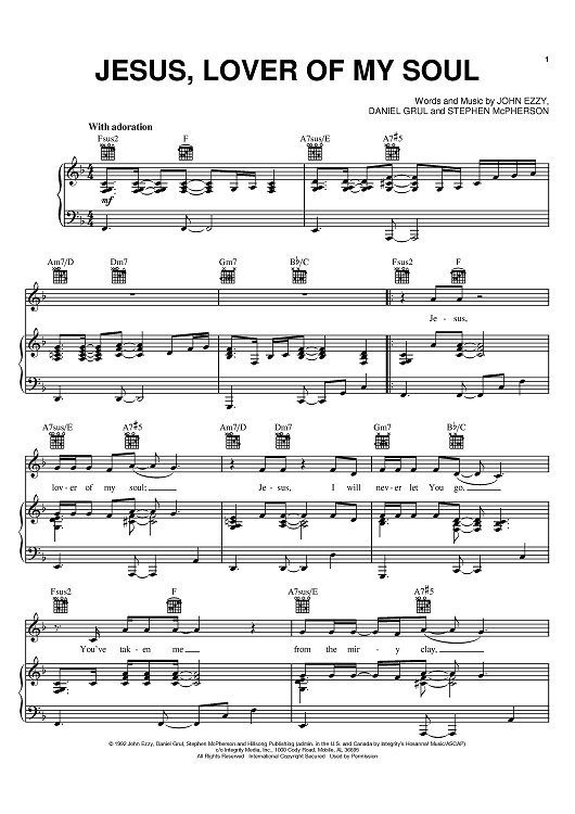 Digital Sheet Music for Jesus, Lover Of My Soul by John Ezzy, Daniel Grul, Stephen McPherson scored for Piano/Vocal/Chords; id:374493