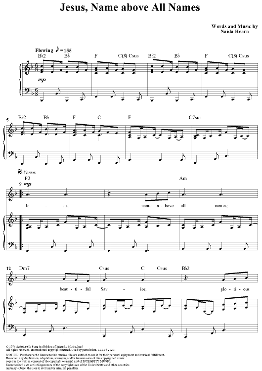 Digital Sheet Music for Jesus, Name Above All Names by Naida Hearn scored for Piano/Vocal/Chords; id:307722
