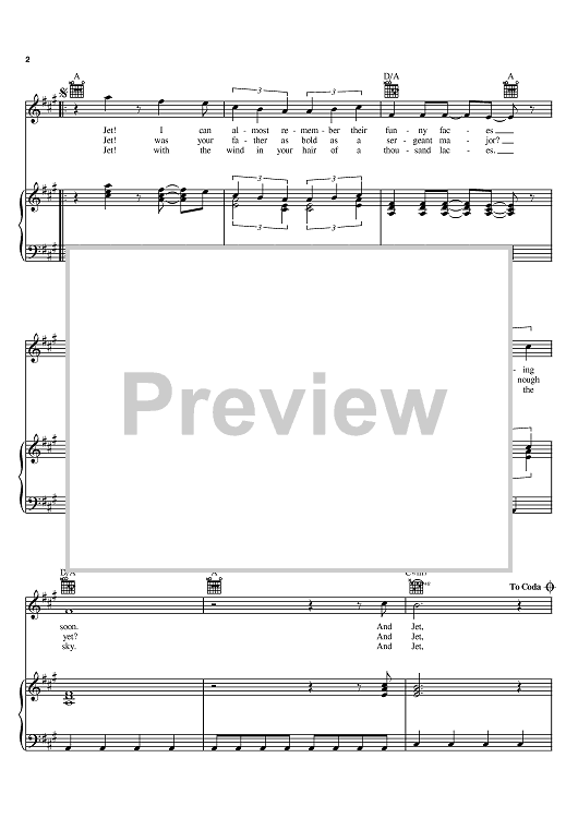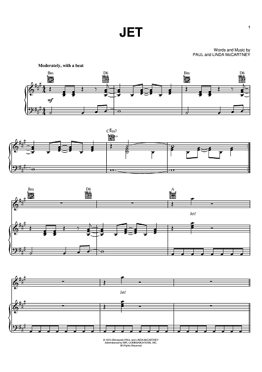 Digital Sheet Music for Jet by Paul McCartney, Linda McCartney scored for Piano/Vocal/Chords; id:398077