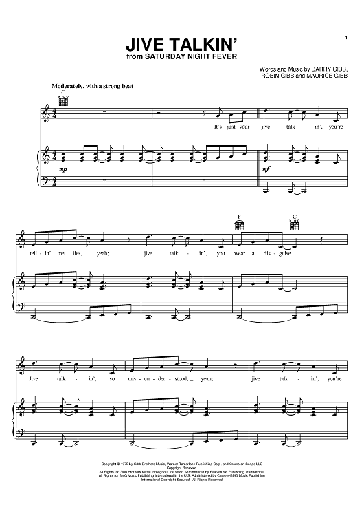 Digital Sheet Music for Jive Talkin' by Bee Gees, Maurice Gibb, Barry Gibb, Robin Gibb scored for Piano/Vocal/Chords; id:369359