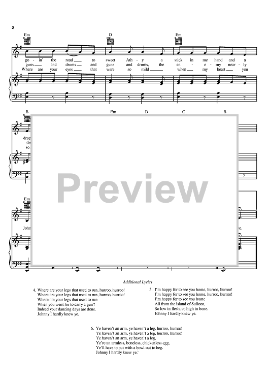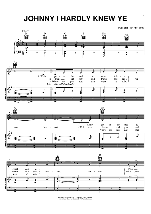 Digital Sheet Music for Johnny, I Hardly Knew You by scored for Piano/Vocal/Chords; id:393967
