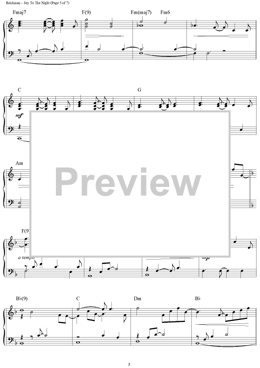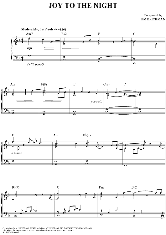 Digital Sheet Music for Joy to the Night by Jim Brickman scored for Piano/Chords; id:450044