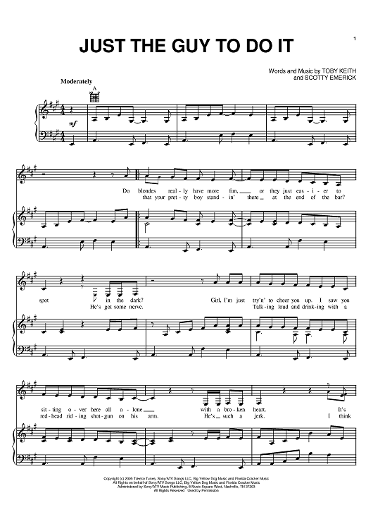 Digital Sheet Music for Just The Guy To Do It by Scott Emerick, Toby Keith scored for Piano/Vocal/Chords; id:386142