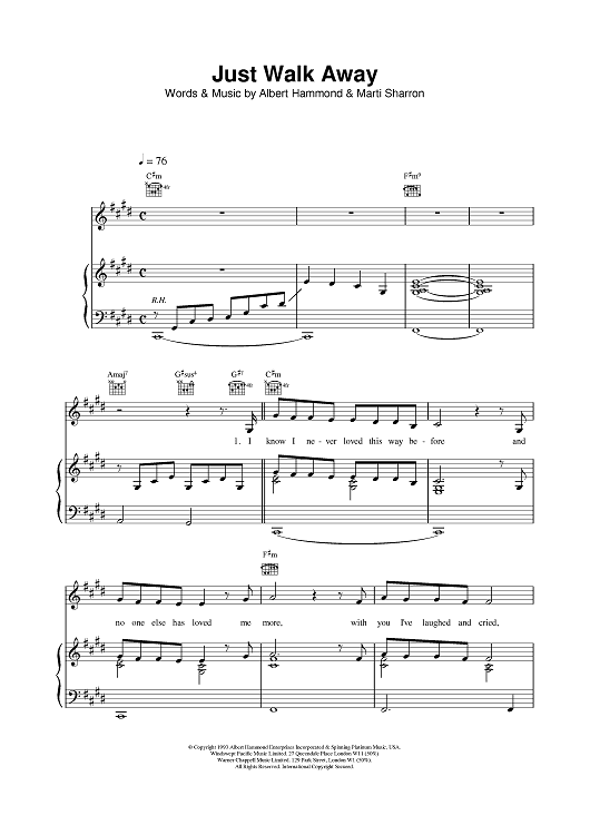 Digital Sheet Music for Just Walk Away by Celine Dion scored for Piano/Vocal/Chords; id:376121