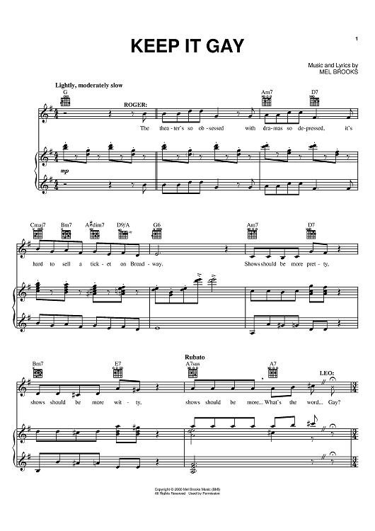 Digital Sheet Music for Keep It Gay by Mel Brooks scored for Piano/Vocal/Chords; id:381803