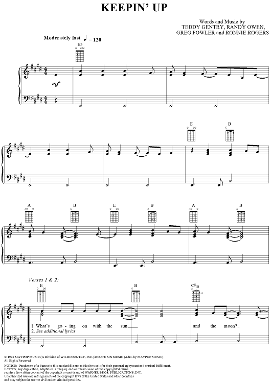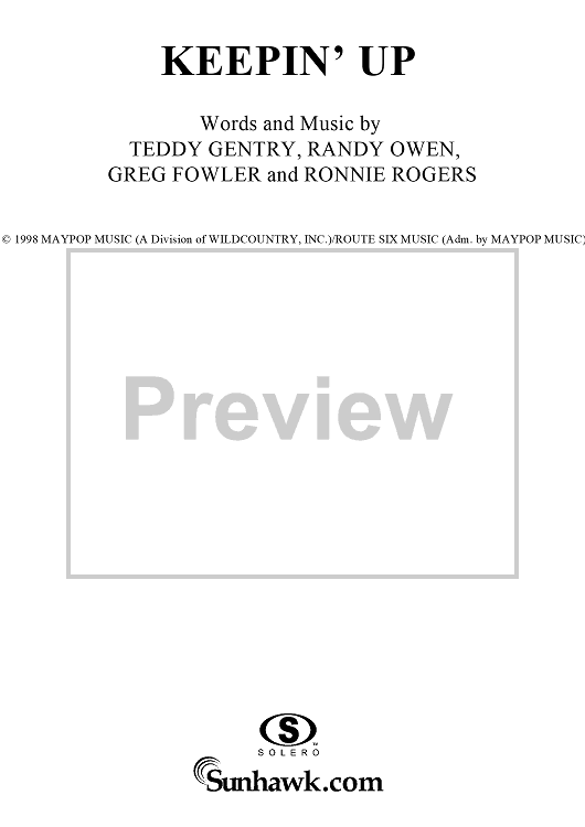 Digital Sheet Music for Keepin' Up by Greg Fowler, Randy Owen, Teddy Gentry, Ronnie Rogers, Alabama scored for Piano/Vocal/Chords; id:114213