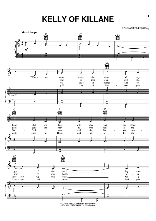 Digital Sheet Music for Kelly Of Killane by scored for Piano/Vocal/Chords; id:393998