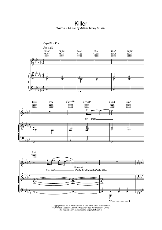 Digital Sheet Music for Killer by Seal, TINLEY scored for Piano/Vocal/Chords; id:381914