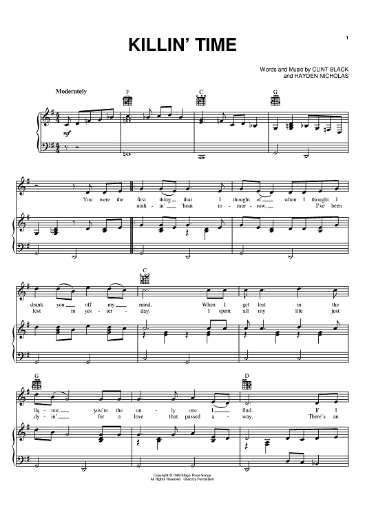 Digital Sheet Music for Killin' Time by Clint Black, Hayden Nicholas scored for Piano/Vocal/Chords; id:373399