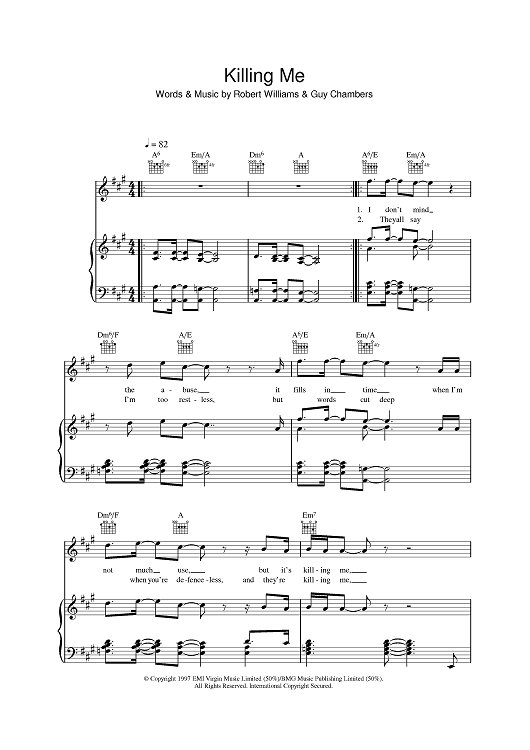 Digital Sheet Music for Killing Me by Robbie Williams, Guy Chambers scored for Piano/Vocal/Chords; id:401249