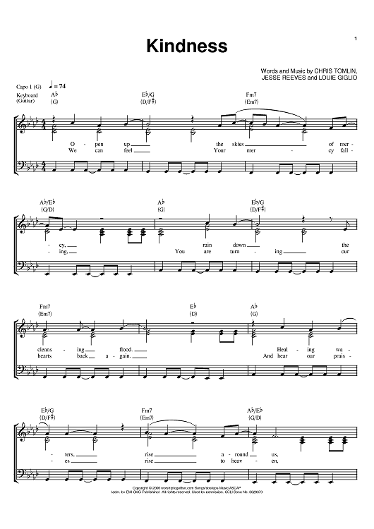 Digital Sheet Music for Kindness by Chris Tomlin, Louie Giglio, Jesse Reeves, Passion Band scored for Piano/Vocal/Chords; id:393764
