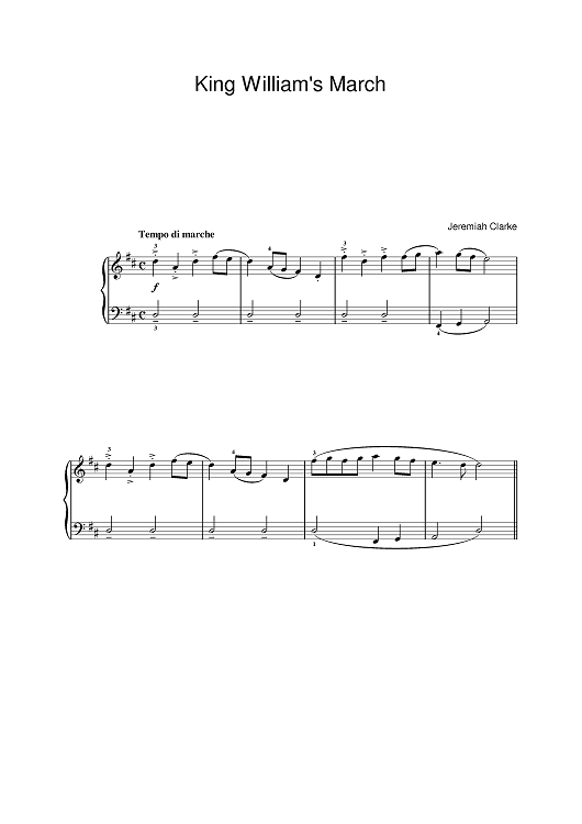Digital Sheet Music for King William's March by Jeremiah Clarke scored for Piano/Vocal/Chords; id:394116