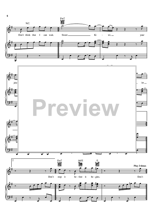 Digital Sheet Music for Kiwi by Adam Levine, Jesse Carmichael, Maroon 5 scored for Piano/Vocal/Chords; id:401080