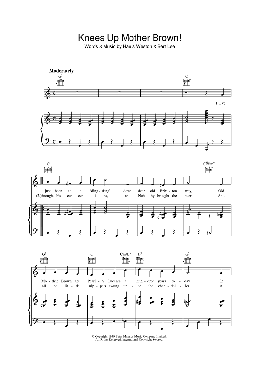 Digital Sheet Music for Knees Up Mother Brown by Bert Lee, Harris Weston scored for Piano/Vocal/Chords; id:401322