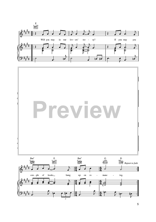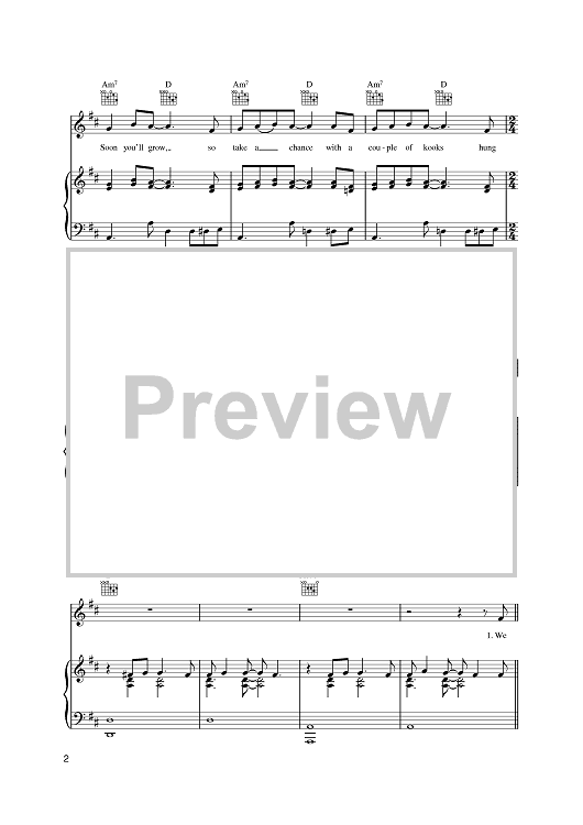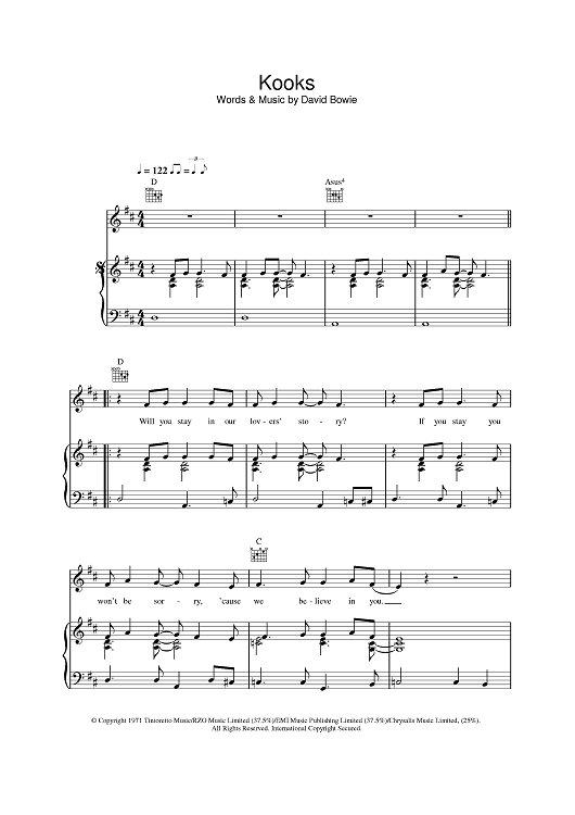Digital Sheet Music for Kooks by David Bowie scored for Piano/Vocal/Chords; id:388776