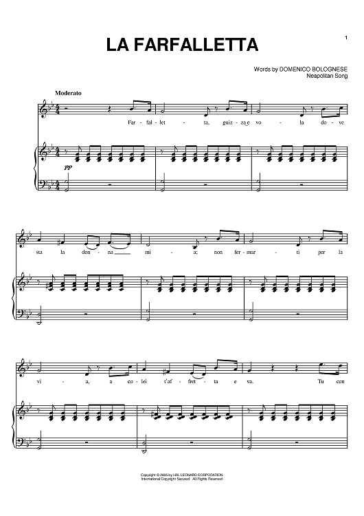 Digital Sheet Music for La farfalletta by Domenico Bolognese scored for Piano/Vocal/Chords; id:384260