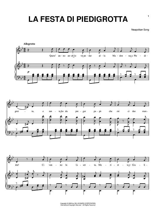 Digital Sheet Music for La festa di Piedigrotta by scored for Piano/Vocal/Chords; id:384261