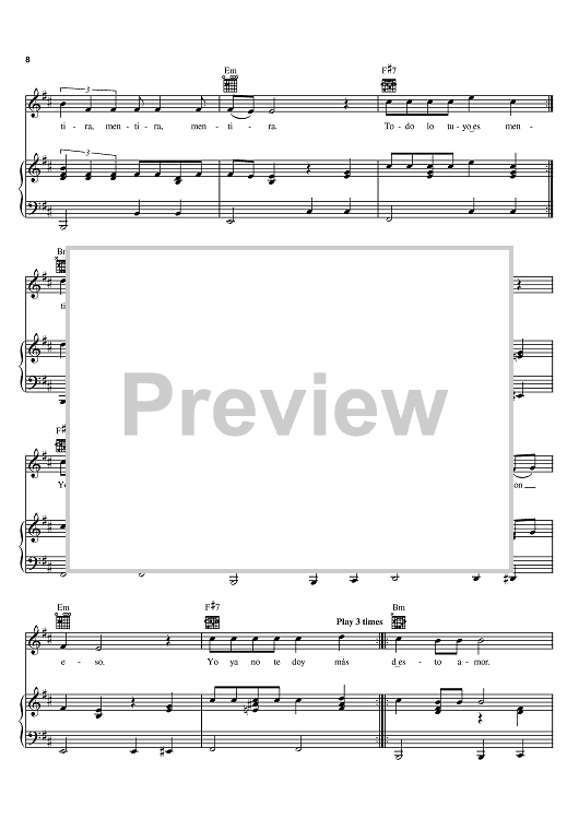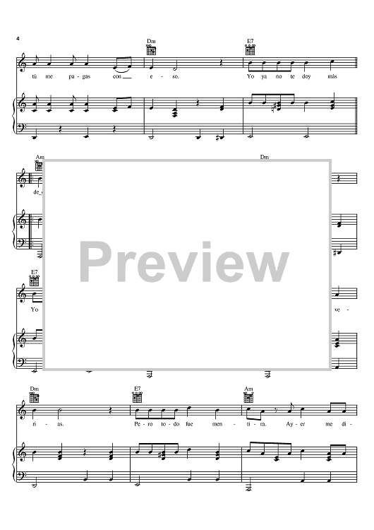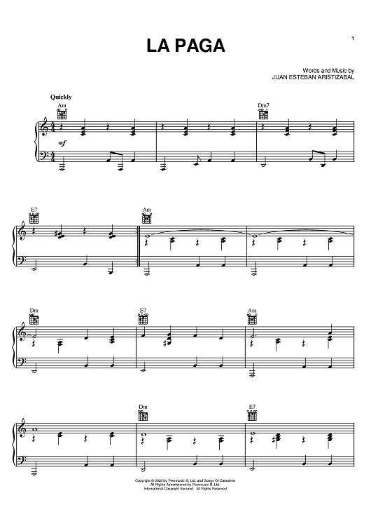 Digital Sheet Music for La Paga by Juanes scored for Piano/Vocal/Chords; id:401792
