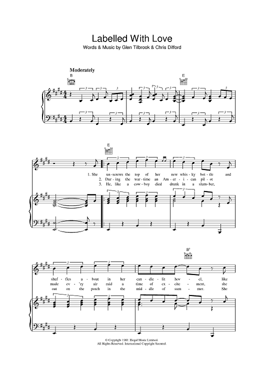 Digital Sheet Music for Labelled With Love by Chris Difford, Squeeze, Glenn Tilbrook scored for Piano/Vocal/Chords; id:398835