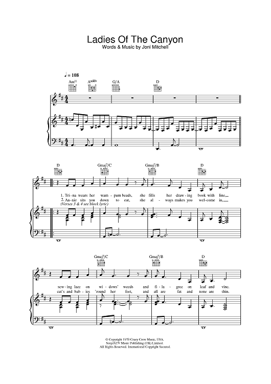 Digital Sheet Music for Ladies Of The Canyon by Joni Mitchell scored for Piano/Vocal/Chords; id:384040