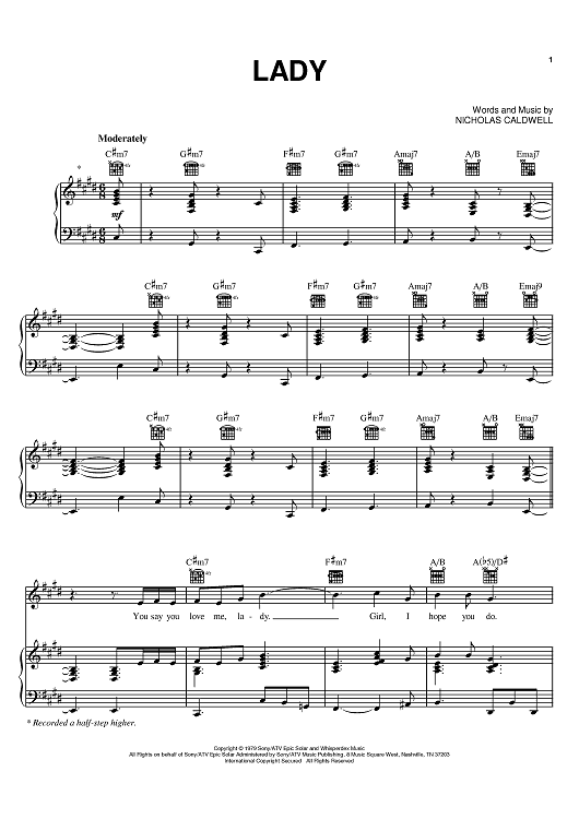 Digital Sheet Music for Lady by Nicholas Caldwell, The Whispers scored for Piano/Vocal/Chords; id:381334