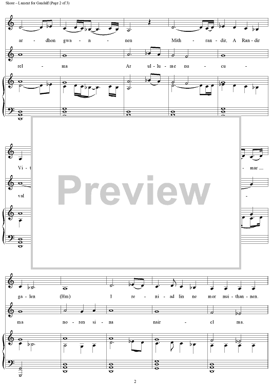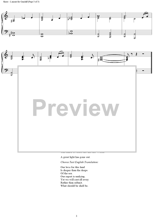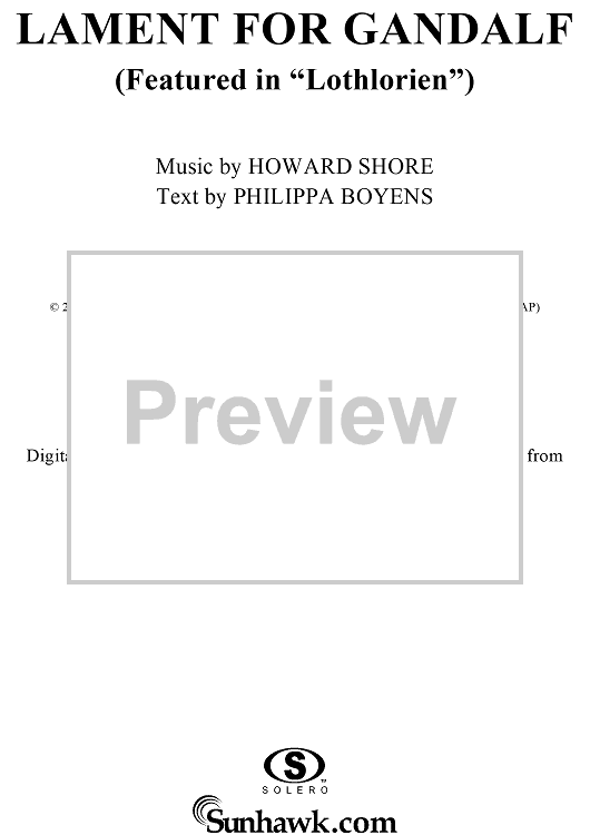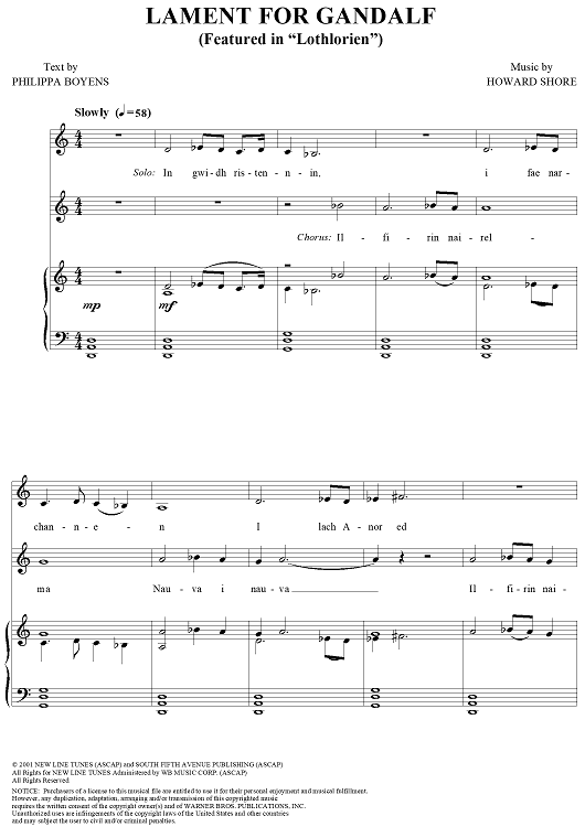 Digital Sheet Music for Lament for Gandalf by Howard Shore, Philippa Boyens scored for Piano/Vocal/Chords; id:295134